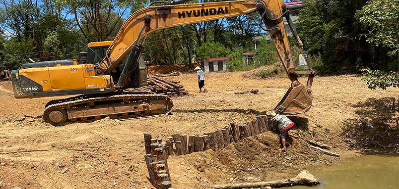 新農(nóng)村改造魚塘木樁圍欄加固